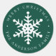 Ajoutez une touche personnalisée à vos cadeaux de vacances et enveloppes avec ces élégants autocollants de flocon de neige. Les autocollants de vacances personnalisés sont munis d'un flocon de neige blanc dessiné à la main au milieu avec votre salutation personnalisée et nom de famille en lettres blanches sur un arrière - plan vert. Les autocollants de vacances modernes sont parfaits pour l'emballage cadeau, les sacs de fête de vacances, enveloppes scellés, et plus encore! Conçu pour coordonner avec notre collection de Noël Joyeux Moderne.