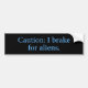 Bumper Sticker design avec la drôle de déclaration : Attention : Je freine pour les Aliens.
