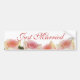 Les roses roses sensibles et le texte de fantaisie de manuscrit, juste marié, font à cet adhésif pour pare-chocs une nécessité avoir pour n'importe quelle voiture de jeunes mariées.