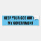 AUTOCOLLANT DE VOITURE KEEP YOUR GOD OUT OF MY GOVERNMENT