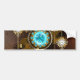 Turquoise lenses with antique watch with brass gears and golden keys on rusty, brown background. Steampunk style.