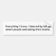 Adhésif pour pare-chocs avec la déclaration "tout que je sais, j'ai appris en tuant les personnes futées et en mangeant leurs cerveaux."
