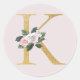 Autocollant d'initiales de roses dorées de printemps lettre K