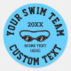 Autocollant et sceaux de l'équipe de natation sur mesure pour nageurs et entraîneurs. Ajoutez votre propre texte personnalisé. Design moderne avec logo lunettes de natation ou icône personnalisée. Arrière - plan bleu de la piscine. Créez vos propres faveurs et cadeaux en vrac.