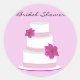 Élégant autocollant de douche nuptiale. Il propose un gâteau mariage rose et blanc sur un arrière - plan rose. Deux fleurs roses sont posées sur le gâteau. Vous customisez le texte en haut.