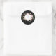 Autocollant personnalisable encadré d'un design floral rose complexe sur un arrière - plan noir.