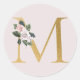 Autocollant initiales or rose printemps lettre M