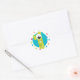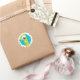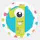 autocollant de bon de fête little monster pour des faveurs ou un sceau d'enveloppe avec un monstre un et des pois colorés.