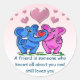 Les coeurs roses flottent au-dessus des éléphants roses et bleus qui s'aiment avec le message "Un ami est quelqu'un qui connaît tout sur vous et vous aime toujours"