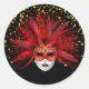 Ce petit autocollant rond est présenté dans un design festif Mardi Gras d'impression de masque de célébration. Customisez cet objet ou achetez tel quel.