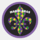 Cet autocollant rond de petite taille est présenté dans un design festif Mardi Gras célébration Fleur De Li. Customisez cet objet ou achetez tel quel.