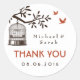 Conception rustique et classique de l'autocollant de remerciement avec cage d'oiseau vintage accrochée à un arbre et deux inséparables volant libre. Célébrez votre journée spéciale avec amour et liberté tout autour. Customisez et personnalisez le libellé pour convenir à toute occasion. fête d'anniversaire, anniversaire, douche nuptiale, baby shower, fête de fiançailles ou autre. Obtenez une invitation correspondante, carte RSVP et timbre postal de ma boutique zazzle.