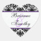 Autocollant Mariage noir blanc pourpre Damask 1,5"