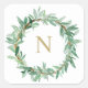 Autocollant monogramme couronne de feuilles d'oliv