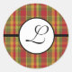 Autocollant monogramme de vacances Carreaux Rouge Vert Brun