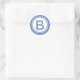 Ce sticker monogrammé peut être utilisé pour un sceau d'enveloppe, un étiquette cadeau personnalisé, ou pour d'autres occasions. Cet autocollant personnalisé a une initiale bleue sur un arrière - plan de blanc avec une bordure circulaire. La première au milieu peut être facilement customisée à une lettre de votre choix.