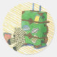 Ours en peluche perdu à côté d'un autocollant de valise verte.