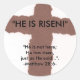 autocollant, arrière - plan blanc avec croix de papier brun déchiré et lettres noires : "IL EST RISEN !" ,, "Il n'est pas là ; Il s'est levé, comme il l'a dit...". Matthieu 28:6