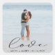 Autocollant personnalisé avec votre photo personnalisée et le mot "amour" en écriture élégante associé à vos propres monogrammes et date dans une police sans serif.