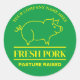 La étiquette est décorée dans un style épuré et moderne, avec une typographie audacieuse et une subtile illustration d'un cochon, mettant l'accent sur la fraîcheur et la qualité de vos produits de porc. L'utilisation de couleurs fraîches et naturelles comme le vert et le jaune donne un sentiment de pureté et de propreté.
