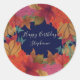 Feuilles d'automne colorées personnalisées couronnes à l'autocollant d'anniversaire. Modifiez ou supprimez le texte en fonction de votre événement.