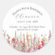 Autocollant personnalisé parfait pour une fête d'anniversaire en août. Le glaïeul rose est la fleur de naissance de ce mois. Il forme une jolie bordure inférieure à l'aquarelle sur cet autocollant d'anniversaire personnalisé floral. Le nom de l'invité d'honneur de l'anniversaire, son âge et sa date de naissance sont placés au-dessus en utilisant une calligraphie et une typographie élégantes. Tout le texte est modifiable.