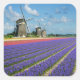 Sticker avec des fleurs d'hyacinthe violet et rose et trois moulins à vent dans un paysage dans la région Bulb dans le Pays-Bas.