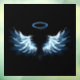 Ailes d'ange bleu clair, artistique, sur un arrière - plan noir. Ailes anges.