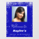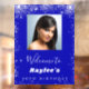 Une affiche de bienvenue pour une fête d'anniversaire de 30e anniversaire (ou de n'importe quel âge). Un arrière - plan bleu royal avec d'élégants étincelles en faux argent. Personnalisez et ajoutez une photo, nom et âge 30. Lettres blanches.