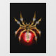Araignée mécanique à vapeur avec or, engrenages en laiton et lampe en verre rouge sur un arrière - plan noir. Style Steampunk.