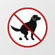 La silhouette noire originale de Destei d'un chien qui fait ses affaires. Le chien ressemble à un Golden Retriever et des races similaires avec des oreilles suspendues. Un symbole rouge no est placé sur le chien pour illustrer la politique "pas de caca de chien autorisé".