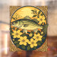 Autocollant Pour Fenêtre Basse Basse Écarté Poisson Rocheuse Et Fleurs Jaun
