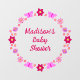 Cette magnifique fenêtre de Baby shower de forme accrochée présente une image art numérique d'un groupe de fleurs et de papillons, chacun une nuance rose pour représenter une petite fille. Les fleurs comprennent Dahlias, nénuphars, ne m'oubliez pas et Chrysanthemums. Les fleurs et les papillons sont disposés en cercle et il y a du texte personnalisé dans le cercle pour que vous puissiez le personnaliser comme vous voulez, ce design parfait pour révéler le sexe du bébé, pour un Baby shower ou pour célébrer un nouveau-né fille.