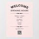 Autocollant Pour Fenêtre Bienvenue Heures d'ouverture avec QR Code noir sur