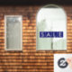 Des autocollants rabais parfaits pour les entreprises qui font de la publicité ou des ventes. Cet autocollant de vitrine est composé du mot "vente"e; écrit en lettres de lettres.