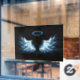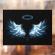 Autocollant Pour Fenêtre Blue Glowing Angel Wings on black background