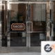 Un cadre décoratif affiche votre nom ou votre nom d'entreprise dans un style calligraphique sur cette accroche de fenêtre personnalisée. Idéal pour les boutiques, les boulangeries, les magasins de détail, les pop-up et bien plus encore. Art et design © 1201AM Design Studio