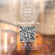 Invite customers to engage with your brand instantly using this modern Connect With Us QR code window cling. Designed to feature your business logo, a friendly call-to-action, a scannable QR code, your Facebook, Instagram, TikTok and X social media handle, and clean white lettering, this eye-catching decal turns your storefront window into a simple, effective connection point. Perfect for retail shops, salons, cafés, studios, clinics, pop-ups, and service-based businesses, this window cling makes it easy for customers to follow you online, explore your website, and stay connected long after they leave. Ideal for glass doors, windows, and entryways, this sleek design helps grow your online presence, increase social media followers, and encourage repeat engagement -- all while maintaining a professional storefront aesthetic. Easy to apply and remove, it’s a smart, contactless way to connect with today’s digitally minded customers. Make your window work harder for your brand with a QR code sign that turns foot traffic into lasting connections.