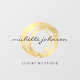 Un cercle bio peint en or métallisé est combiné avec votre nom d'entreprise pour créer un logo de luxe sur cette vignette personnalisée. Grande signalisation pour les boutiques, salons, clous, coiffeurs, pop-up, bijouteries, espaces de vente au détail et plus encore. Art et design originaux © 1201AM Design Studio | www.1201am.com