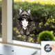 Autocollant Pour Fenêtre Chat de sorcière Halloween Déplaisant Portrait mig