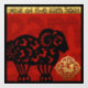 Dans un carré sont un noir Ram coupé en papier et un ornement doré à l'intérieur duquel est Chèvre avec idéogramme. Derrière la scène, il y a un fond rouge sur lequel des lettres décoratives et ornées forment les mots : RAM GOAT YEAR. Conception sur de grands décalques de fenêtre carré avec arrière - plan noir. Carte de voeux, carte postale de vacances, matériel de fête et plus bientôt... Parfait pour le Nouvel An Chinois du Ram ou de la Chèvre 2027 ou Anniversaire (personnes nées dans l'année Ram ou Chèvre). — "La chèvre (chinoise : 羊 ; pinyin : yáng) est le huitième signe du cycle de 12 ans des animaux qui apparaissent dans le zodiaque chinois lié au calendrier chinois. Le signe est aussi appelé le signe du bélier ou du mouton, puisque le mot chinois yáng est plus précisément traduit par Caprinae, une sous-famille taxonomique qui comprend à la fois des moutons et des chèvres. (...) On peut dire que les personnes nées dans ces plages de dates sont nées dans l'"Année de la chèvre", tout en portant le signe élémentaire suivant : 17 février 1931 - 5 février 1932 = Chèvre métallique, 5 février 1943 - 24 janvier 1944 = Chèvre d'eau, 24 janvier 195 5 - 11 février 1956 = Chèvre de bois, 9 février 1967 - 29 janvier 1968 = Chèvre de feu, 28 janvier 1979 - 15 février 1980 = Chèvre de terre, 15 février 1991 - 3 février 1992 = Chèvre de métal, 1, Février 2003 - 21 Janvier 2004 = Chèvre d'eau 19 Février 2015 - 7 Février 2016 = Chèvre de bois 6 Février 2027 - 25 Janvier 2028 = Chèvre d'incendie, 24 Janvier 2039 - 1 Février 20 Terre = Terre Chèvre (...)" Wikipedia