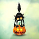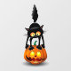 Chat drôle et effrayé Halloween personnage de dessin animé debout sur un Citrouille riant coquin. Image vectorielle humoristique originale Copyright BluedarkArt TheChameleonArt.