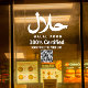 Autocollant de fenêtre de code QR de nourriture Halal d'entreprise blanc simple et professionnel. Un autocollant de fenêtre halal pour les autocollants halal de restaurant musulman.