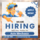 Customize Generic Now Hiring Auto Mechanic Window Cling
