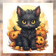 Autocollant Pour Fenêtre Cute chat noir et Jack-o-Lanterns