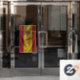 Fenêtre serrée avec le drapeau de l'Espagne dans le style de tissu ondulé. Ce design présente les couleurs des drapeaux espagnols et un design avec un bel effet texturé matériau de tissage. Ce design de drapeau est une excellente façon de vous montrer fier d'être d'Espagne.