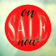 Conception moderne de sticker pour fenêtre ronde avec le texte "En SOLDE maintenant" sur fond rouge.