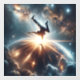Illustration époustouflante d'un breakdancer effectuant un mouvement de gel puissant au milieu d'une explosion galactique. Ce street art cosmique célèbre la fusion de l'énergie urbaine et de l'émerveillement universel — idéal pour les amateurs de danse, les fans de science-fiction et les rêveurs d'espace.
