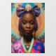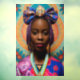 Image d'une femme africaine avec un gros arc fleuri et médaillon. C'est une image créée par AI avec un design à thème floral.