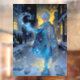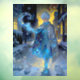 Frostmaker of a Moonlit Street – A Winter Portrait. Jack Frost strolls down a quiet winter street, painting the night with swirling frost and shimmering snowflakes. His animal friends follow close, watching as he turns the cold into magic. Warm lamplight glows behind him, making his icy trail sparkle. This charming scene captures the wonder of winter nights, inviting children to imagine a gentle spirit who plays while the world sleeps.